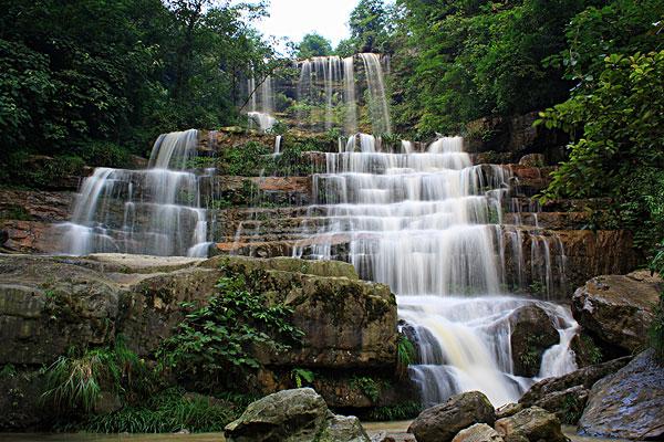 大關(guān)黃連河瀑布群距昭通市大關(guān)縣城5公里,有專(zhuān)線(xiàn)公路及中巴車(chē)直達(dá)景區(qū)。沿途山花爛漫、幽谷縱橫、清泉奔涌、鳥(niǎo)語(yǔ)花香。主要景點(diǎn)有仙女瀑、情郎瀑、少女瀑、月老瀑、鴛鴦瀑、洞房瀑、相思瀑、對(duì)歌瀑、姊妹瀑、銀鏈瀑、迎客瀑、壽星瀑、珠簾瀑及神秘莫測(cè)、千姿百態(tài)的白象洞,令人心曠神怡的水簾長(zhǎng)廊和使人銷(xiāo)魂愜意的大滑板等20多處。加上形似飛鴿的世界珍稀植物珙桐花,堪稱(chēng)天下奇景。