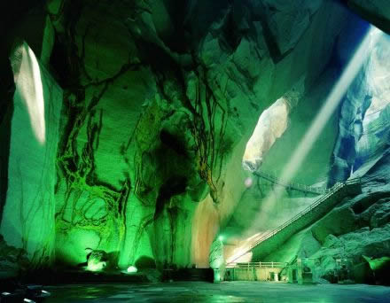 棄舟向左而行,豁然開朗,便是國內絕無僅有的巖洞音樂廳了,巖洞音樂廳總面積為2000平方米,能同時容納近700人入座欣賞音樂廳民樂隊的精彩演奏。游人不管在音樂廳的哪個角落都能聽到同頻自然立體聲。2002年4月28日,長嶼硐天巖洞音樂廳舉辦了“中國首屆巖洞音樂廳”,同年10月21日德國北萊州交響音樂團在此成功舉行一場別開生面的“萊茵河之聲”巖洞音樂會。