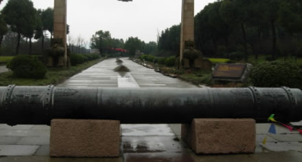 龍杠,位于入口處的大禹陵牌坊前一橫臥的青銅柱子,名龍杠。龍杠兩側(cè)各有一柱,名拴馬樁。凡進(jìn)入陵區(qū)拜謁者,上至皇帝,下至百姓,須在此下馬、下轎,步行入內(nèi),以示對(duì)大禹的尊崇。龍杠上有“宿禹之域,禮禹之區(qū)”的銘文。