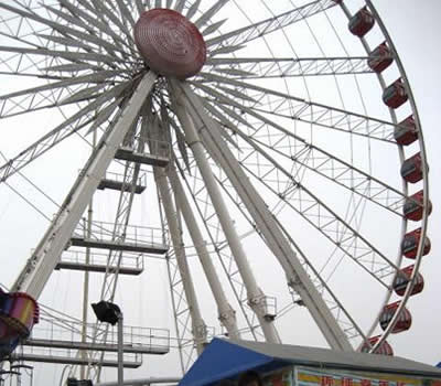 樂園夾道兩邊的仿古建筑已基本完工,顯得色彩斑斕氣度不凡,網(wǎng)球場也已鋪好6片,水上高爾夫練習(xí)場已可讓游人揮桿。最為顯眼的是,一艘仿古的巨型帆船已然下水,整條船已被布置成一個水上娛樂的場所,外觀色彩鮮艷,船上旗幡招展,頗成氣候,加上水面上來來往往的各種船只,確乎有些域外海濱的氣象。另外,各種娛樂設(shè)施也新增不少,不光是陸上,水中也有不少讓人心動的活動。最令人興奮的是空中,飛機、氣球不一而足,大大增加了游客的參與機會。這里我們將樂園新增游樂項目大致介紹一下,讓游人前往時有個先期挑選的可能。