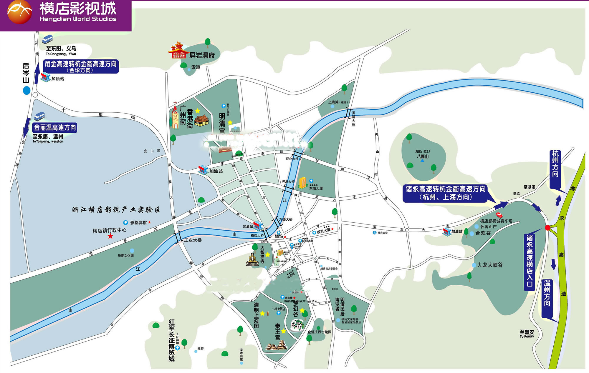 福建方向:福溫高速—金麗溫高速永康出口下,往東陽方向走省道至橫店