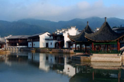 “桃花源”景系集中了從江南各地拆遷的明清古民居異地重建而成,已被命名為“中國文物保護基金會示范基地”和“中國古民居保護基地”。粉墻黛瓦、磚石木雕、斗拱琴坊是無數(shù)工藝大師的心血結晶;戲院祠堂、府第民宅、屯溪老街是千年歷史文化的民俗畫卷。這里有東陽木雕館、徐氏精品館等十多個展館,具有較強的觀賞性和知識性。
