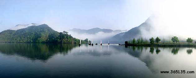 仙宮湖:崛立在云和縣緊水灘的浙南第一壩緊水灘水電站大壩,將滔滔甌江攔腰鎖住。在水電站建成的同時,浙南的茫茫林海中奇跡般地出現(xiàn)了一個巨大的人工湖緊水灘庫湖。1993年8月9日經(jīng)地區(qū)行署批準(zhǔn),改名為仙宮湖。放眼全湖,碧波蕩漾,晶瑩似鏡,周圍千姿百態(tài)的奇巖異峰、浩如煙海松濤,點綴湖邊的村莊、田野和山林,好似一幅色彩斑斕,絢麗多姿的山水畫。這里廣闊的湖面,煙波浩渺,水山相連,望不盡頭。與千島湖相比,雖無“千島”之態(tài)。但湖中島嶼正在一個個形成。隨著蓄水位的漸漸增高,將會出現(xiàn)更多“湖心之島”。那晶瑩澄碧的湖水在陽光的照射下,閃著瀲滟的波光,似一顆閃眼的明珠,鑲嵌在群山峻嶺之中。湖兩旁的松杉。翠竹掩映于湖唇,好似繡上一道花邊,君若泛舟湖中,其可謂“人行明鏡中”了。倘若天氣作變,更給景色增添妙異的變幻。晴天,頭上藍(lán)天萬里,腳下碧波千頃,點點白帆移動,轟轟船只掠過,舉目望去,山水一色;回首顧盼,卻置身于綠水青山之中。雨天,霧靄茫茫,層林碧水連成一片,人在湖面,有身置云霧瓊樓仙境之感。尤其在赤石、龍門一帶,水域?qū)掗,島嶼列布,湖區(qū)四周還有“九潭十八灣”、“夏洞天”、“龍老洞”、“蝴蝶洞”、“牛頭山”等勝景。仙宮湖不愧為特具魅力的旅游勝地。