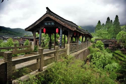 鎮(zhèn)南村口,有一座跨楓溪之半圓形的單孔石拱橋水安橋。橋上建有九間橋亭,中為重檐歇山頂,建于清光緒十七年(1891年),為浙西唯一的設(shè)有古橋亭的古橋梁。