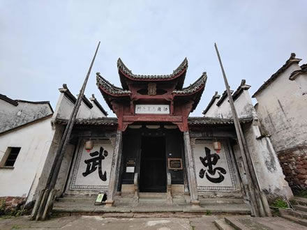 位于村的中心,坐北朝南。前面有一個(gè)名曰“鐘池”的水塘,鐘池有一道墻,正面是一幅大八卦圖(左),背面是一個(gè)“!弊帧4蠊梦挥阽姵乇眰(cè),始建于明代,據(jù)說是江南地區(qū)僅存的諸葛亮紀(jì)念堂。祠堂前后五進(jìn),建筑面積700平方米。里間十分開闊,可供數(shù)千人舉行活動(dòng)。堂內(nèi)壁上繪有三顧茅廬、舌戰(zhàn)群儒、草船借箭、白帝托孤等有關(guān)諸葛亮的故事壁畫。堂外圍墻旁現(xiàn)存六株龍柏,暗示諸葛后人六族繁衍,人丁興旺。門庭飛閣重檐,高約10米,上懸一塊橫匾“敕旌尚義之門”。頂層有明英宗于正統(tǒng)四年(1439)所賜盤龍圣旨立匾一方,表彰諸葛彥祥賑災(zāi)捐谷千余石的義舉。整座建筑古樸典雅,氣勢恢宏,保存完好。