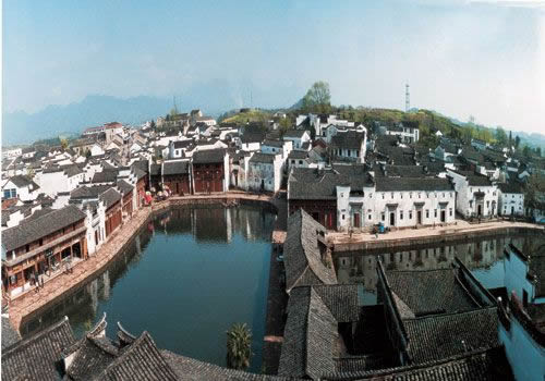 諸葛八卦村,位于浙江中西部蘭溪市境內(nèi)的群山中,據(jù)考證,該村是由諸葛亮27世孫諸葛大師于元代中后期開始營建的。有600余年的歷史,仍保存完好,成為人們旅游訪古的新去處。村落在8座小山的合抱之中,這8座小山的分布很像八卦的樣子,形成外八卦;村中的樓宇建筑、街道八方呼應(yīng)!扮姵亍蔽挥谥行模铺珮O陰陽魚圖,8條小巷向外輻射,形成內(nèi)八卦。
