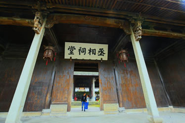 丞相祠堂也是為紀(jì)念諸葛亮而修建的,與大公堂相距百米,面積1400平方米。坐東朝西,平面按“回”字形布局,有屋52間,由門廳、中庭、廡廊、鐘鼓樓和享堂組成,古樸渾厚,氣勢非凡。祠堂雕梁畫棟,門窗欄桿等部件均雕刻精細(xì),美不勝收。中庭是祠堂最精彩的部分,中間四根合抱大柱,選用上好的松、柏、桐、椿四種木料制成,取“松柏同春”之意,祈求家族世代興旺。中庭兩邊廡廊各七間,塑諸葛后裔中的杰出人士,用來激勵(lì)諸葛子孫們奮發(fā)向上,成就一番事業(yè)。從廡廊拾級(jí)而上,兩旁分列鐘、鼓二樓。祠堂最后是享堂,中塑諸葛亮像,高2米余,兩側(cè)分侍諸葛瞻、諸葛尚及關(guān)興、張苞像,氣韻生動(dòng),呼之欲出。